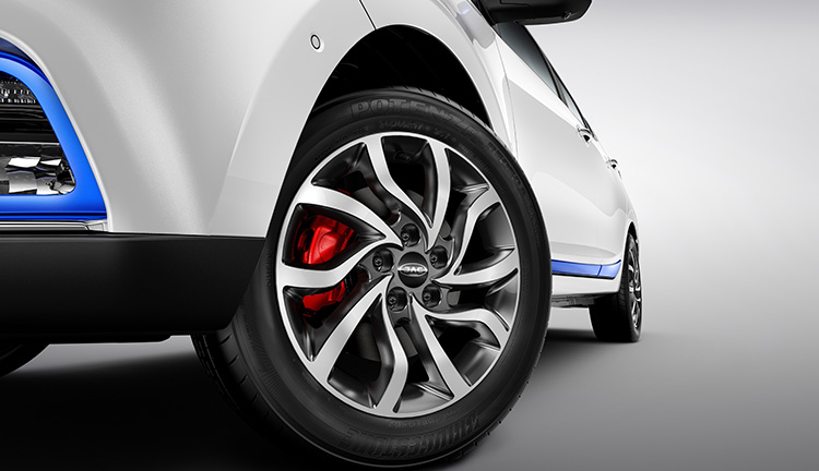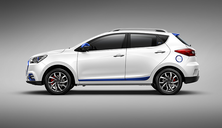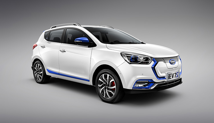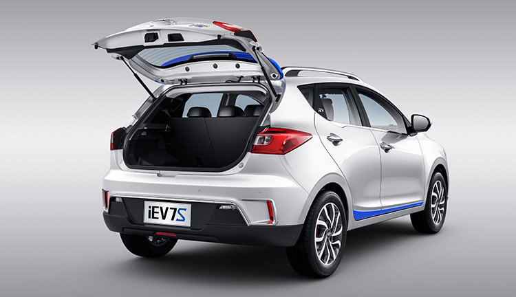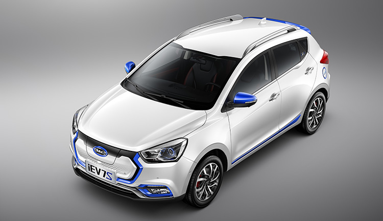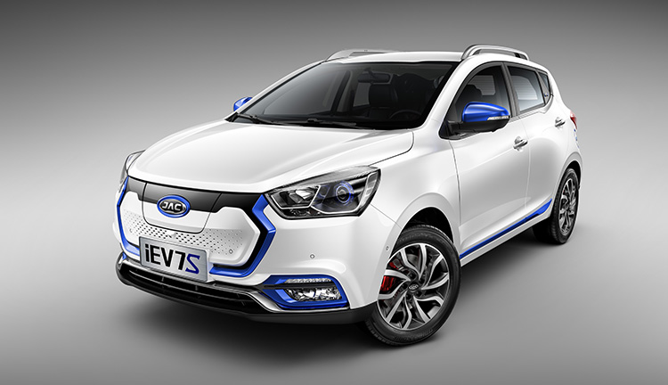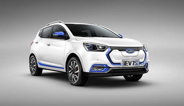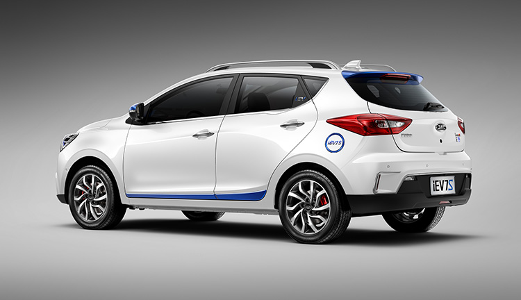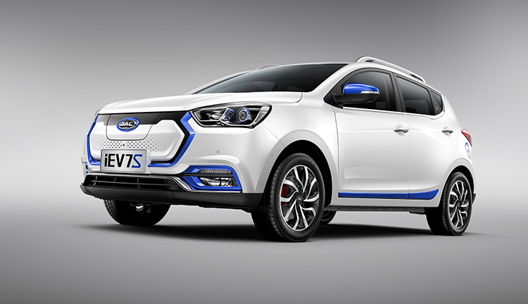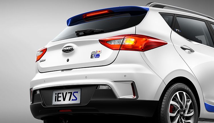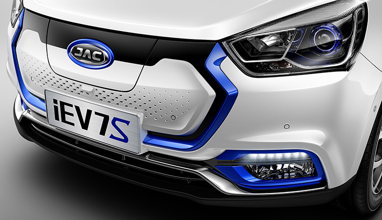 Дизайн електричного кросовера iEV7S від бензинової моделі S2 відрізняють окремі елементи, такі як спеціальний дизайн бамперів, оформлення передньої частини з унікальними елементами «зоряне небо», під яким приховані дверцята доступу до гнізд зарядного пристрою, а також акценти синього кольору, котрі вказують на електричний привід цього авто. Дизайн кузова розроблявся в Європі, але зберіг певні риси, що вказують саме на азійське походження JAC iEV7S.