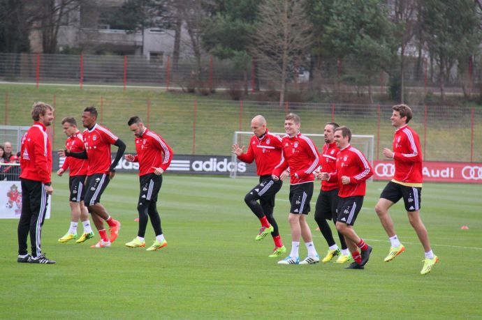 Убедившись в том, что гости уже достаточно прониклись духом истории, менеджеры клуба пригласили нас на открытую тренировку "Баварии", которая завершилась совершенно неожиданным образом.