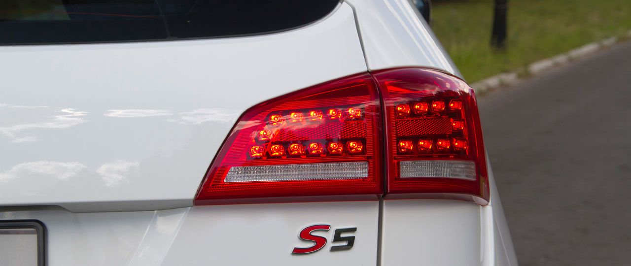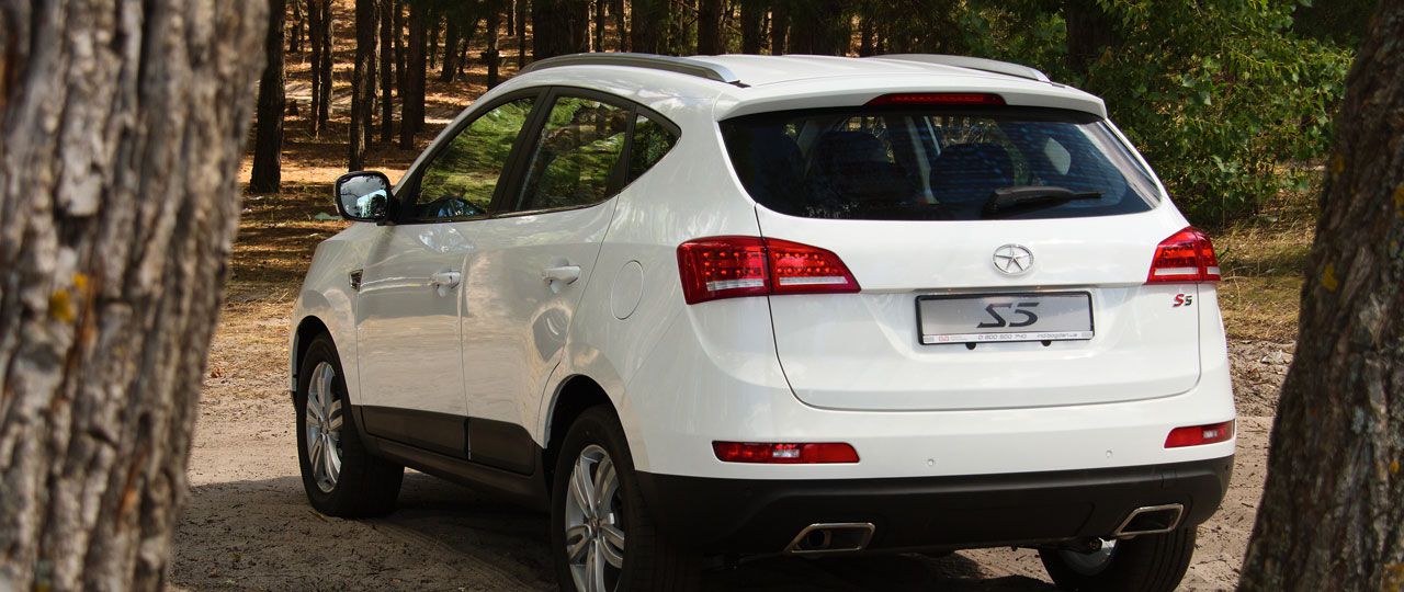 Велика трапецієподібна форма хромованої решітки S5 доповнена вбудованими кристалічними фарами і протитуманними фарами алмазної форми, надаючи йому переконливий вигляд. Дизайнерські зовнішні дзеркала заднього виду з обігрівом і електроприводом збільшують огляд водієві та зручні у регулюванні, а вбудовані світлодіодні бокові повторювачі покажчиків поворотів на дзеркалах підкреслюють спортивну стилістику автомобіля.