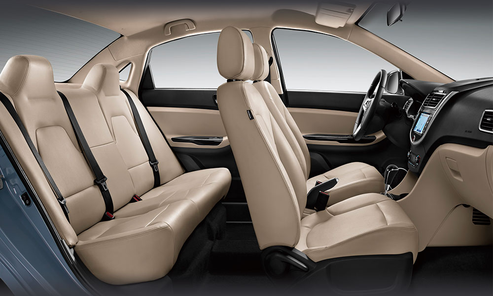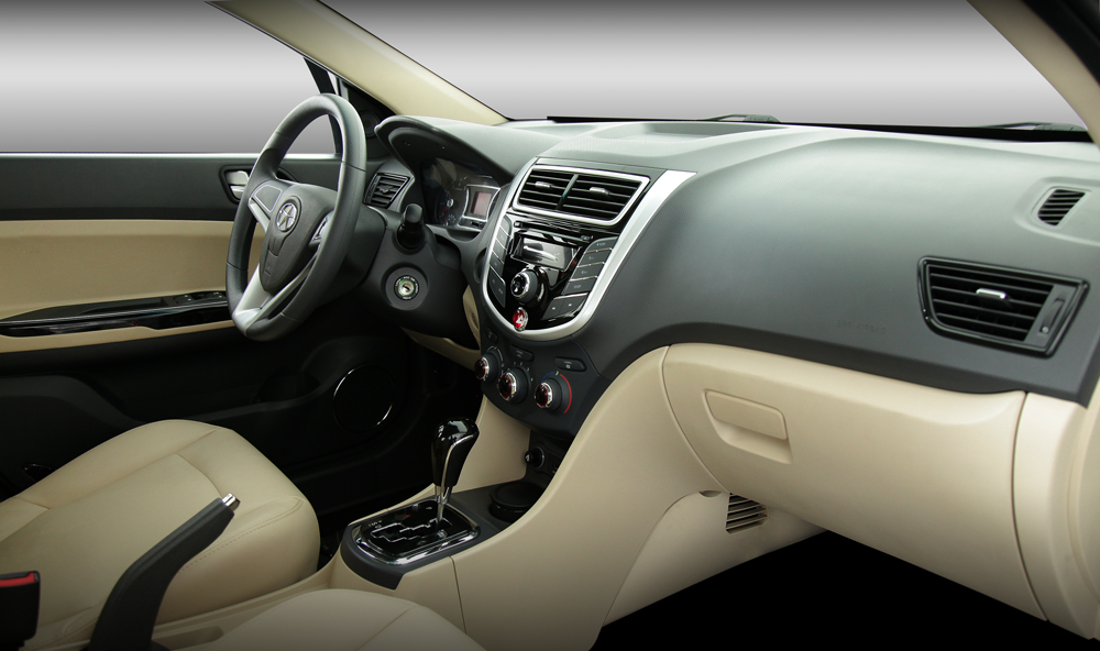 Інтер'єр седану JAC J4 відрізняється непоганою ергономікою, особливо на водійському місці, все завжди під рукою, є все найнеобхідніше і для використання бортових систем додаткових зусиль не потрібно. Передня панель JAC J4 має форму T-типу, що створює широкий візуальний ефект. В повній комплектації автомобіля є 7-дюймовий мультимедійний дисплей, який розташовано на передній консолі та додає зручності у керуванні мультимедійною системою. Комбінація дво- або однокольорового якісного пластику з хромованими елементами органічно вписуються в дизайнерське рішення всього салону і надають витонченості, відповідають новітнім сучасним тенденціям дизайну інтер’єру автомобіля. Просторий інтер'єр і раціональне оснащення JAC J4 забезпечує максимальний комфорт для водія і пасажирів. Модель J4 розрахована на велику сім'ю або компанію з 5 чоловік, тому в салоні достатня кількість підстаканників, скриньок, ніш та інших приємних і важливих дрібниць. Вже у базову версію автомобіля включено регульовані передні сидіння, клімат-контроль, електропідсилювач керма, парктроніки, склопідіймачі, зовнішні дзеркала з електроприводом, підлокітник з вбудованим підсклянником і аудіосистема (CD + MP5+ Радіо). JAC J4 - це просто ідеальний варіант як для подорожей, так для щоденних переміщень містом.