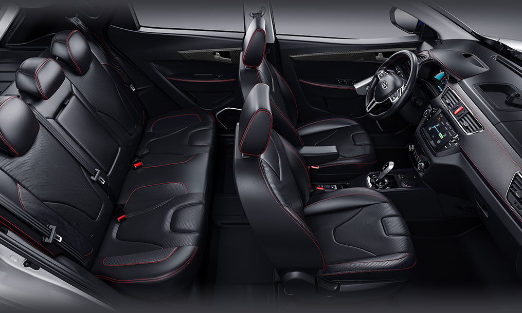 Лаконічний та нескладний дизайн передньої панелі гармонічно поєднується з рельєфними кріслами та кольоровими елементами з пластику. В центральній частині «торпедо» розміщений великий 8-дюймовий дисплей мультимедійної системи, що також відображує інформацію про автомобіль у реальному часі. А панель приладів повністю відрізняється від такої у бензиновій моделі, вона є максимально інформативною і легкою для сприйняття. Просторий багажний відсік залишився таким завдяки розміщенню акумуляторної батареї під днищем автомобілю. Це також забезпечило комфортне розміщення водія та пасажирів з достатнім запасом вільного простору у салоні.