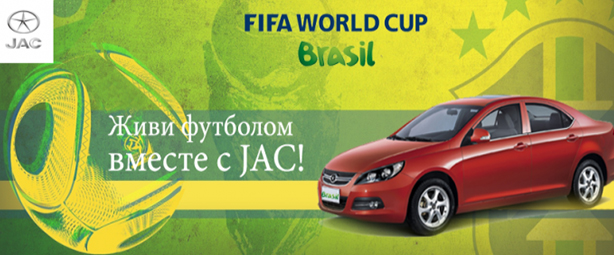Друзья, официальный дистрибьютор автомобилей JAC в Украине компания «Богдан-Автотрейд» активно поддерживает инициативы компании JAC International, связанные с Чемпионатом мира по футболу, который проходит в эти дни в Бразилии.